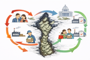 人々が将来を悲観すれば消費は抑えられます。企業が慎重になれば投資は控えられます。支出が減れば所得が減り、所得が減ればさらに支出が減る。この悪循環は、市場の内部だけでは止まりません。そこで「国家」が登場します。