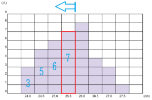 なので、中央値は25.5cmです。