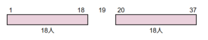 ここでは37人いるので、1人〜18人が並んで、19番目の人が来て、20番目〜37番目を並べます。