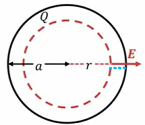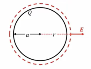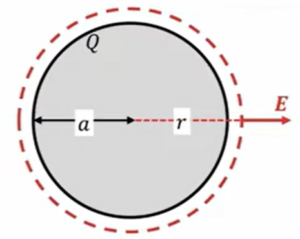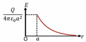 \(E \ = \ \frac{Q}{4πε_0r^2} \ (r \ > \ a)\)