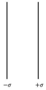 面密度 +σ、-σの平行平面状電荷分布