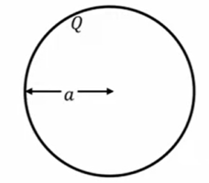 \(E \ = \ \frac{Q}{4πε_0r^2} \ (r \ > \ a)\)  \(V \ = \ -\displaystyle \int_{∞}^{r} \ Edr \ = \ \frac{Q}{4πε_0r}\)