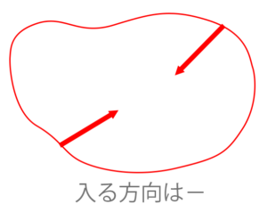 これ、最初にマイナスが何でついてるかというと、閉曲面があって、「それから出ていくときをプラス」というふうに定義しているためです。この場合は閉曲面に入る方向ですね。両方ともに入る方向なので、そのために\(2E\)にマイナスがついています。