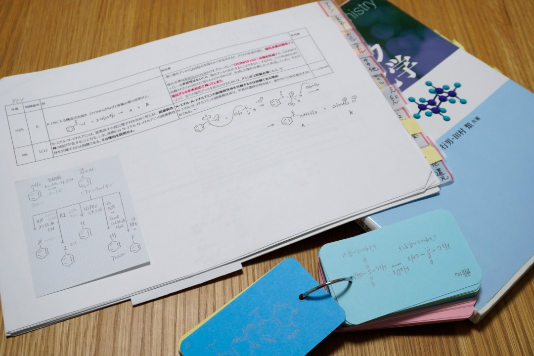 中光:有機化学以外の残りの試験勉強もあったので一概に計算はしてないんですけど、仕事もあったので1日最大でも3時間ぐらいで、有機化学に割いた時間でいうとちょっと難しいんですけど、1日最低1時間は取っていたと思います。
